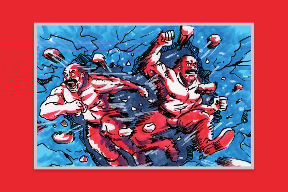 This one-of-a-kind illustration was created to represent Double Dragon and appears in the book. It is drawn on 5×7 high-quality Copic paper using Copic markers for color and was torn from the original spiral-bound notebook.